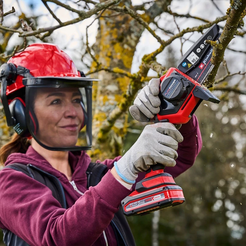 Az Einhell GE-PS 18/15 Li Holster Kit akkumulátoros ágfűrész praktikus eszköz fák és bokrok metszéséhez, formázásához, valamint zöldhulladék aprításához és kisebb méretű faanyagok vágásához. A kompakt fűrész az Einhell Power X-Change rendszer része, így minden kompatibilis akkumulátorral és töltővel használható.A készüléket az Einhell szénkefe nélküli (brushless) motorja hajtja, amely nagyobb teljesítményt és hosszabb élettartamot biztosít a hagyományos szénkefés motorokhoz képest. Online regisztráció után a motorra 10 év garancia érvényes.A 15,8 cm hosszú vezetőlemez és a 12,5 cm-es vágáshossz ideálissá teszi a könnyű és kompakt ágfűrészt rugalmas kerti használatra. A hatékony motor alacsony rezgésszintet és akár 4,8 m/s láncsebességet biztosít.A készülék kiváló minőségű lánccal és vezetőlemezzel érkezik a nagy vágási teljesítmény és a precíz munkavégzés érdekében. A karbantartás egyszerű, mivel a lánc és a vezetőlemez szerszám nélkül cserélhető.A biztonságos használatról kézvédő és lehajtható láncvédő gondoskodik. A keskeny markolat, a Softgrip felületek és a kétkezes használatra kialakított kéztámasz kényelmes fogást biztosít.A csomag tartalmaz egy védőburkolatot a biztonságos tároláshoz, egy olajadagolót a lánc kézi kenéséhez, valamint egy imbuszkulcsot a lánc utánfeszítéséhez, amely közvetlenül a készüléken tárolható.A szett része egy strapabíró, pamutszövetből készült tok is, megerősített belső szerkezettel. A kb. 18 cm átmérőjű nyílás és a 24 cm-es mélység elegendő és biztonságos helyet biztosít az ágfűrész számára.A készülék akkumulátor és töltő nélkül kerül szállításra, ezek külön – például praktikus kezdőcsomagként – vásárolhatók meg.