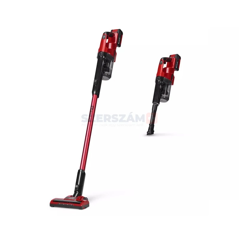 Az Einhell TE-SV 18 Li (1x4,0 Ah) akkumulátoros állóporszívó egy sokoldalú tisztítóeszköz, amely lehetővé teszi a vezeték nélküli porszívózást bármilyen környezetben. A Power X-Change rendszer részeként minden kompatibilis akkumulátorral és töltővel használható. A csomag tartalmaz egy 4,0 Ah-s Power X-Change akkumulátort és egy töltőt, így a készülék azonnal használatra kész.A kiválasztott üzemmódtól függően a porszívó hosszú üzemidőt és nagy szívóerőt biztosít. Az ECO mód ideális a mindennapi szennyeződésekhez, míg a BOOST mód maximális teljesítményt nyújt a makacs szennyeződések eltávolításához.Az átgondolt 2 az 1-ben kialakításnak köszönhetően a készülék használható könnyű kézi porszívóként és kényelmes állóporszívóként is. A motoros padlófej alaposan eltávolítja a szennyeződéseket kemény padlókról és szőnyegekről, míg a mozgatható csukló és a négy beépített LED precíz tisztítást tesz lehetővé még sötét vagy nehezen hozzáférhető helyeken is.A gumírozott kerekek kímélik az érzékeny padlókat, például a parkettát, és halk működést biztosítanak. A higiénikus használatról egy háromlépcsős szűrőrendszer gondoskodik ciklonleválasztóval, amely előszűrőből, mosható redős szűrőből és motorszűrőből áll. A porzsák nélküli portartály egyetlen gombnyomással könnyen kiüríthető.Az ergonomikus és könnyű kialakítás révén a porszívó hosszabb használat során is kényelmesen kézben tartható. A praktikus fali tartó lehetővé teszi a készülék és tartozékai rendezett tárolását. A mellékelt rugalmas résszívó fejjel a szűk helyek, például autók belső tere is könnyedén tisztítható.A folyamatos működés az indítókapcsoló egyszeri megnyomásával aktiválható.A készülék a következőkkel együtt érkezik: motoros kefe, rugalmas résszívó, 2 az 1-ben fej, fémhálós előszűrő, redős szűrő, 4,0 Ah Power X-Change akkumulátor és töltő.