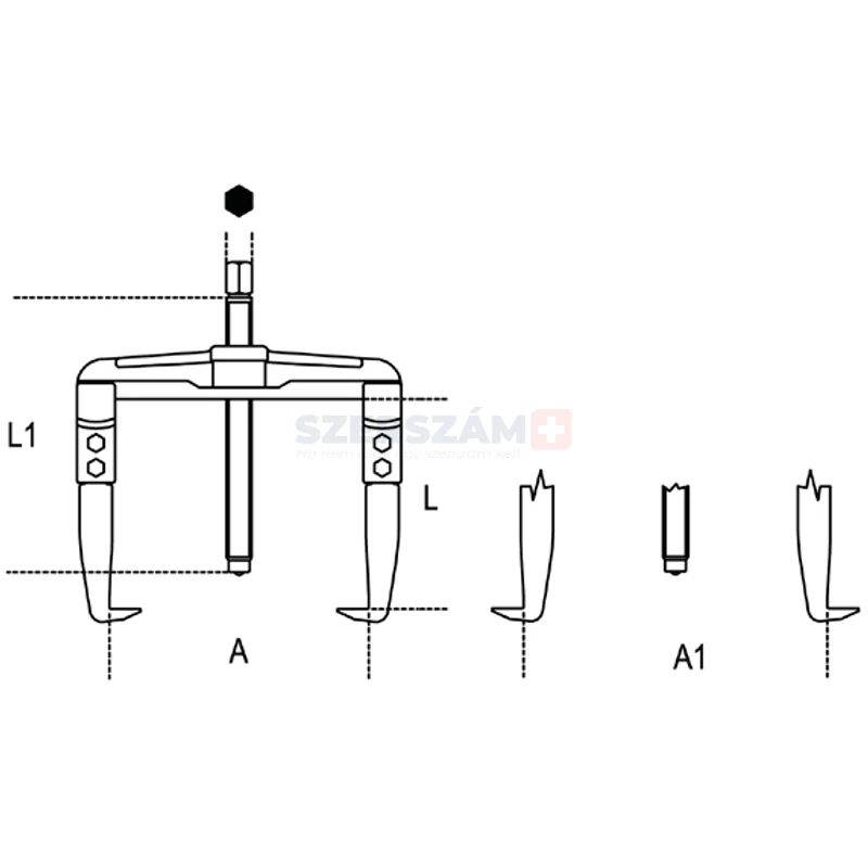 | cikkszám | méret (mm) | A min-max (mm) | A1 min-max (mm) | L (mm) | L1 (mm) | szár SW (mm) |