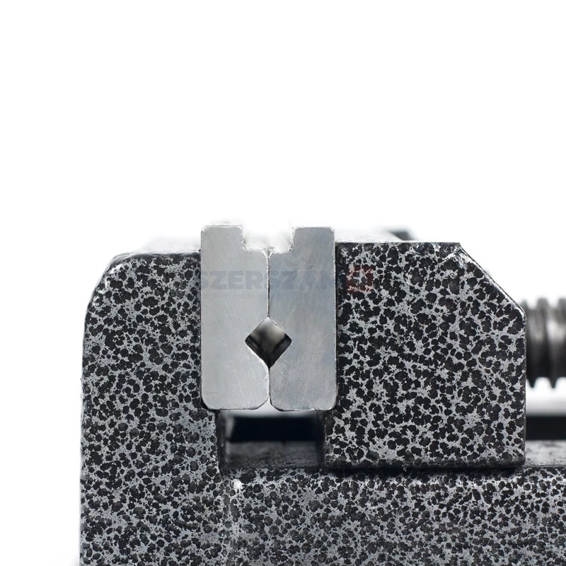• Egy hornyolt és egy sima cserélhető satupofa nem szögletes vagy szabálytalan alakú munkadarabok befogásához