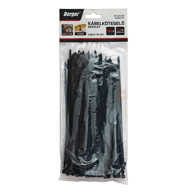 BERGER kábelkötegelő, UV fekete 7,6x500mm 50db EN62275