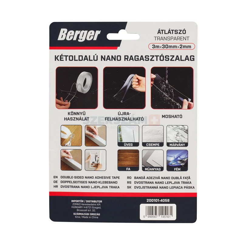 • Kiváló tapadás: Erős nano-technológiás ragasztó a tartós rögzítéshez.