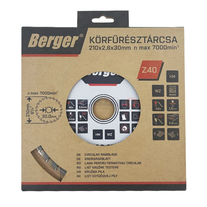 BERGER körfűrésztárcsa keményfém váltó fogazattal HM 190x2,6x20mm Z60/WZ