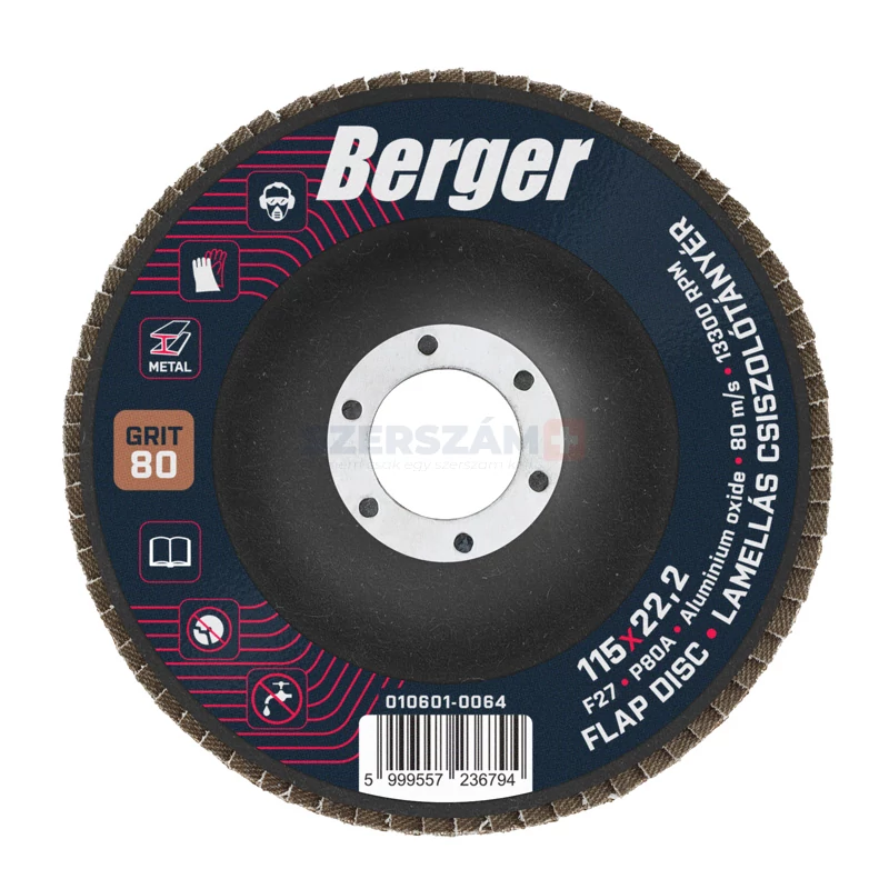 BERGER lamellás csiszolótányér F27 egyenes 115x22,2 P80A