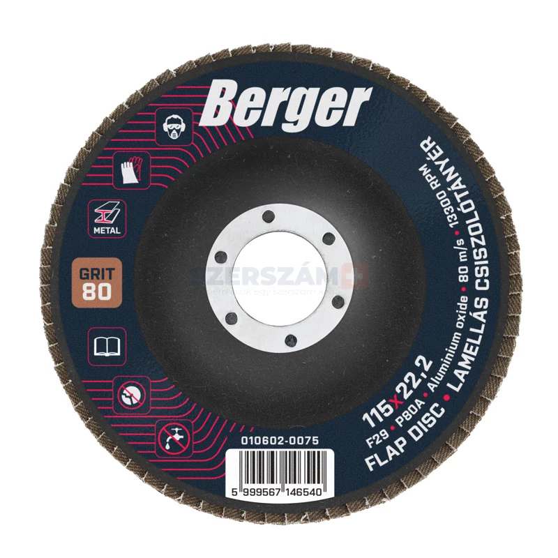 BERGER lamellás csiszolótányér F29 kúpos 115x22,2 P80A