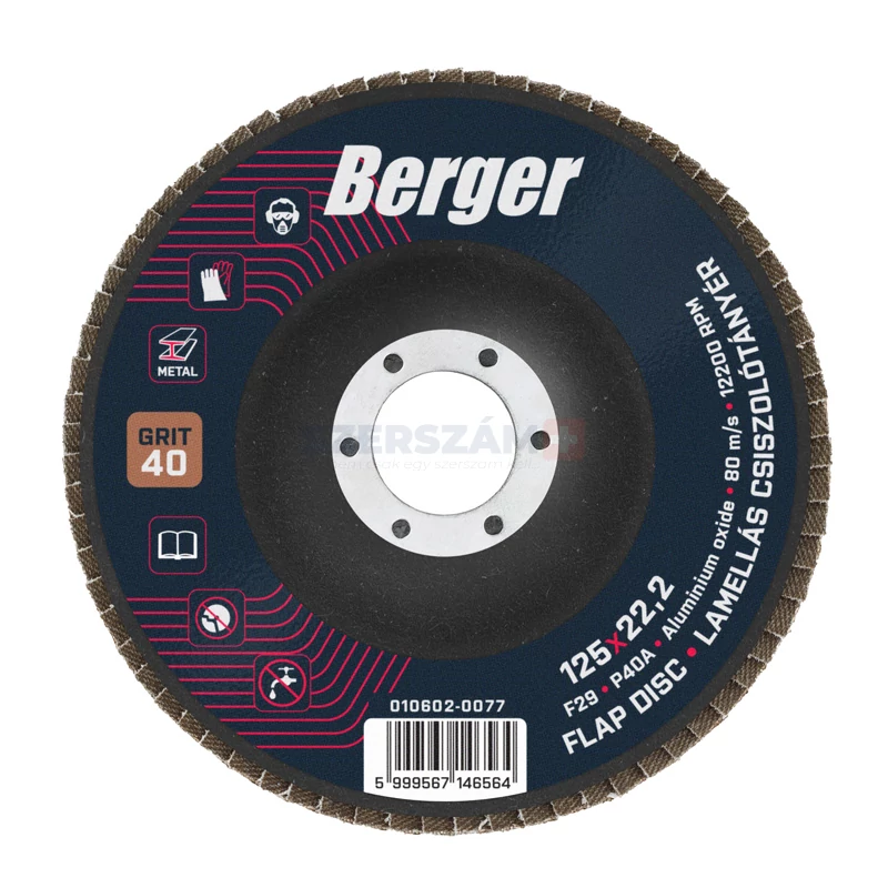 BERGER lamellás csiszolótányér F29 kúpos 125x22,2 P40A