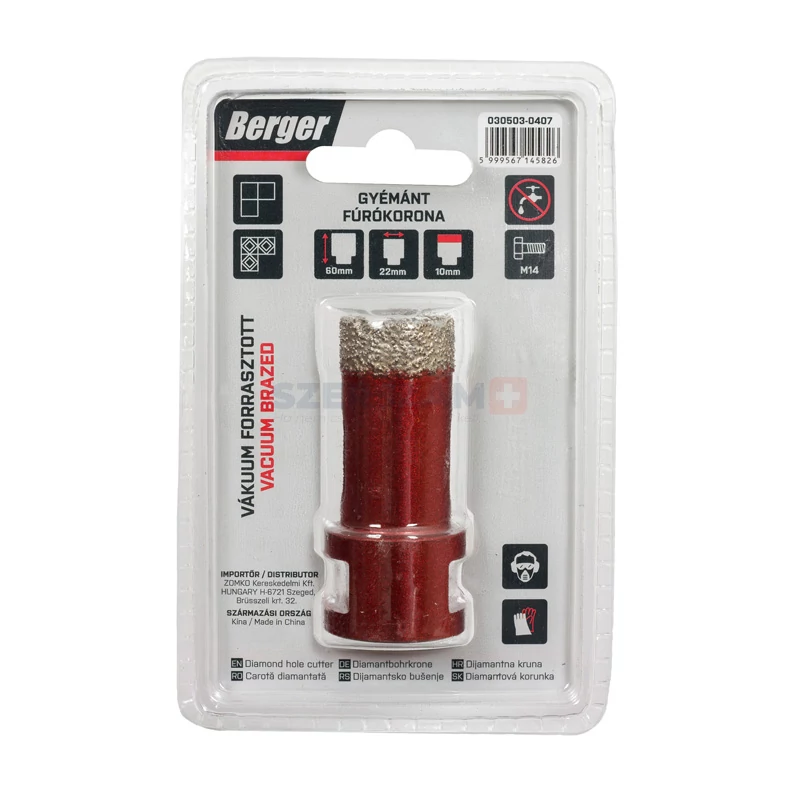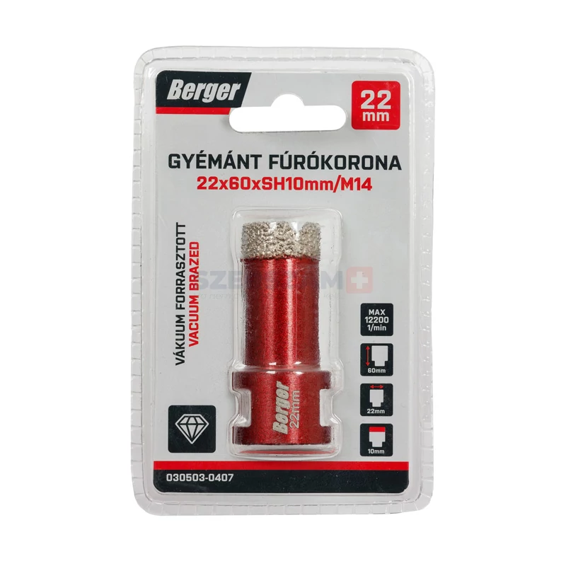 BERGER menetes gyémánt fúrókorona 22x60xSH10mm/M14