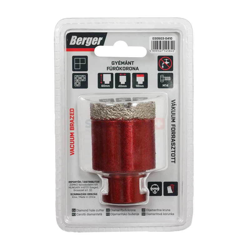 BERGER menetes gyémánt fúrókorona 40x60xSH10mm/M14