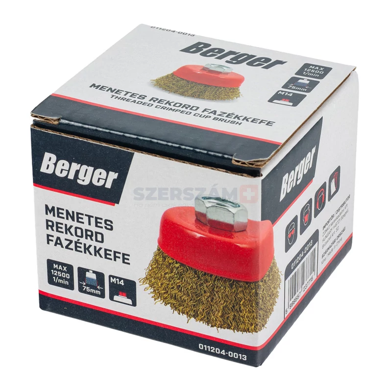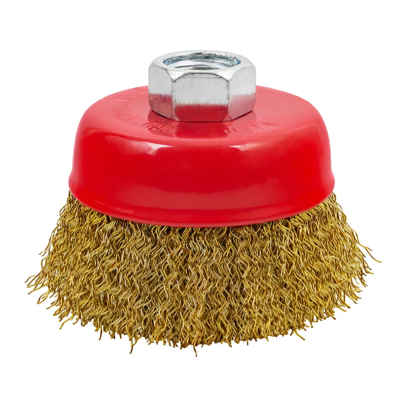 • Erős, acélházba rögzített, hullámos, nemesacél szálú, menetes rekord fazékkefék sarokcsiszoló gépekhez