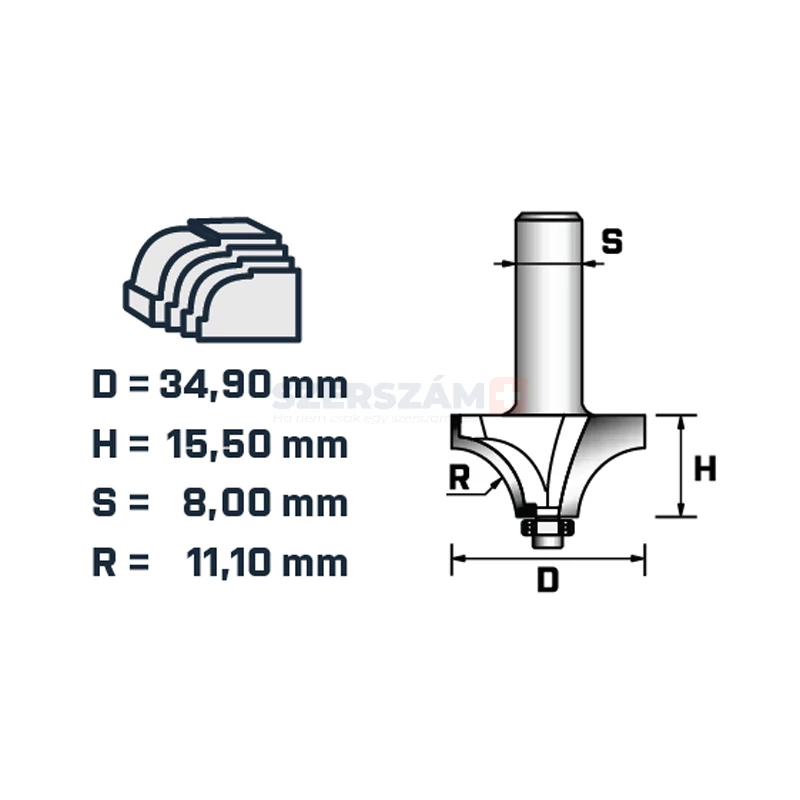 | cikkszám | D (Maróél átmérő) mm | H (Marás mélysége) mm | S (Szár átmérője) mm | R (Sugár) mm |