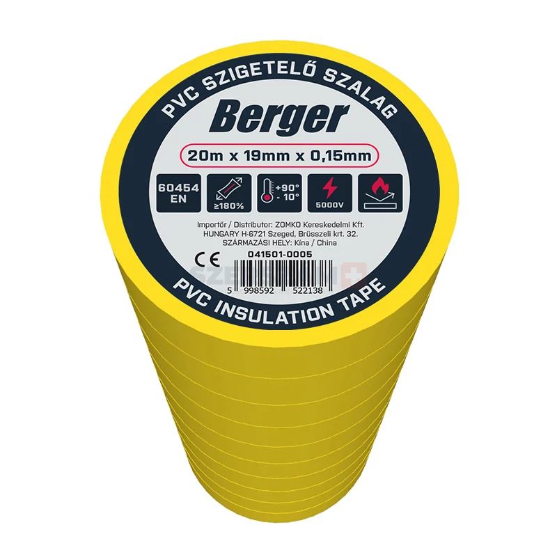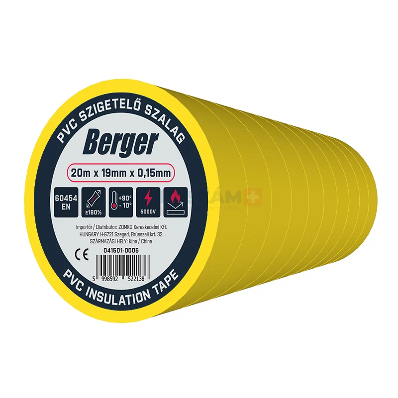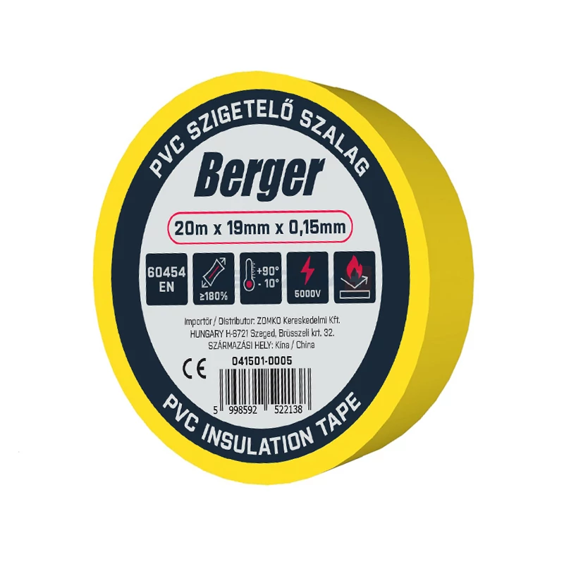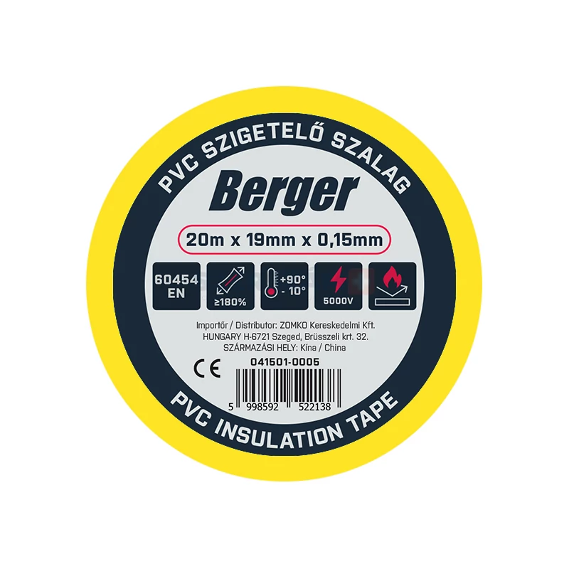 BERGER PVC szigetelőszalag Sárga 20mx19mm/0,15mm