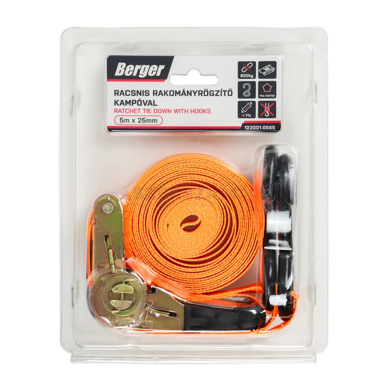| cikkszám | méret | LC - Lekötési kapacitás (kg) | BS - Szakítóerő (kg) | SHF - Szabványos kézi erő (daN) | STF - Szabványos előfeszítő erő (daN) | Szabvány megfelelőség | db/csomag | kampó |