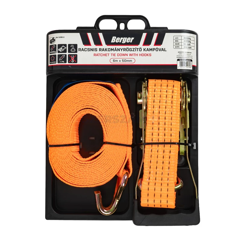 BERGER racsnis rakományrögzítő 6mx50mm/4000kg kampós EN12195-2