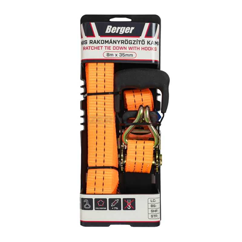 BERGER racsnis rakományrögzítő 8mx35mm/2000kg kampós EN12195-2