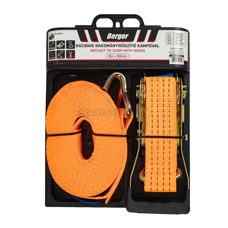 | cikkszám | méret | LC - Lekötési kapacitás (kg) | BS - Szakítóerő (kg) | SHF - Szabványos kézi erő (daN) | STF - Szabványos előfeszítő erő (daN) | Szabvány megfelelőség | kampó |