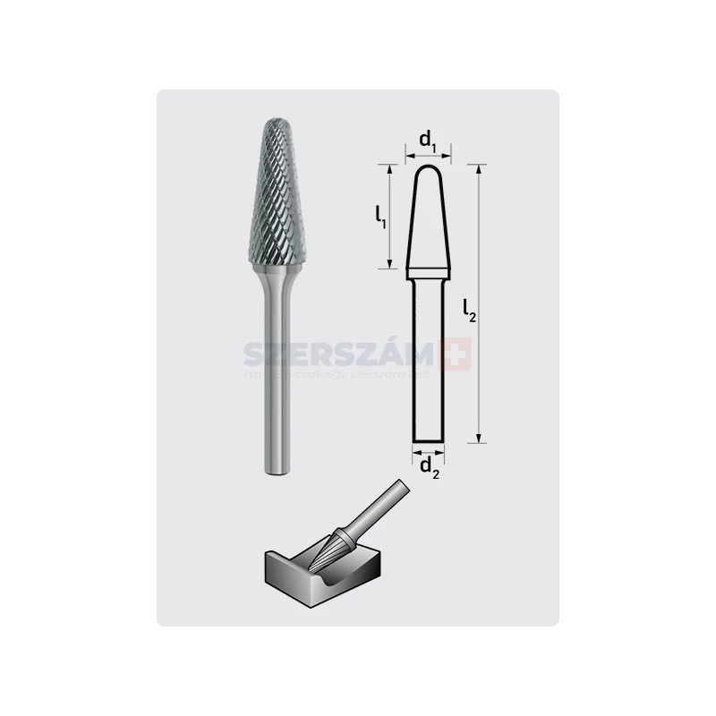 – Gömbölyített vég: A csúcs gömbölyített, ami csökkenti a szerszám kopását és javítja a felületminőséget, különösen olyan alkalmazásoknál, ahol a pontos és sima felület kialakítása fontos.
