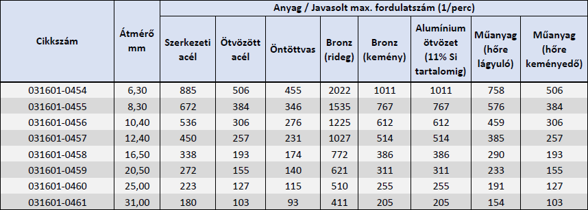 • ötvözött, nagy teljesítményű gyorsacélból, 5% kobalttartalommal
