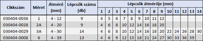 • Mindegyik lépcső egy adott méretű párhuzamos furat előállítására alkalmas, a megmunkálható anyag vastagságát a lépcsők hossza határozza meg.