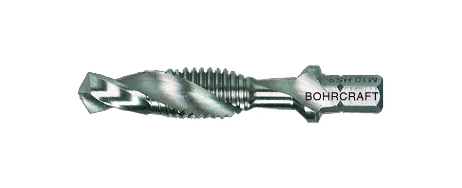 • Csavarthornyú, HSS-G anyagminőségű, kombinált gépi menetfúró 1/4" hatszög szárral