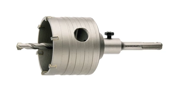 • 3 részes üreges fúrókorona készlet (1 x üreges fúrókorona, 1 x SDS-Plus befogószár, 1 x központosító fúró)