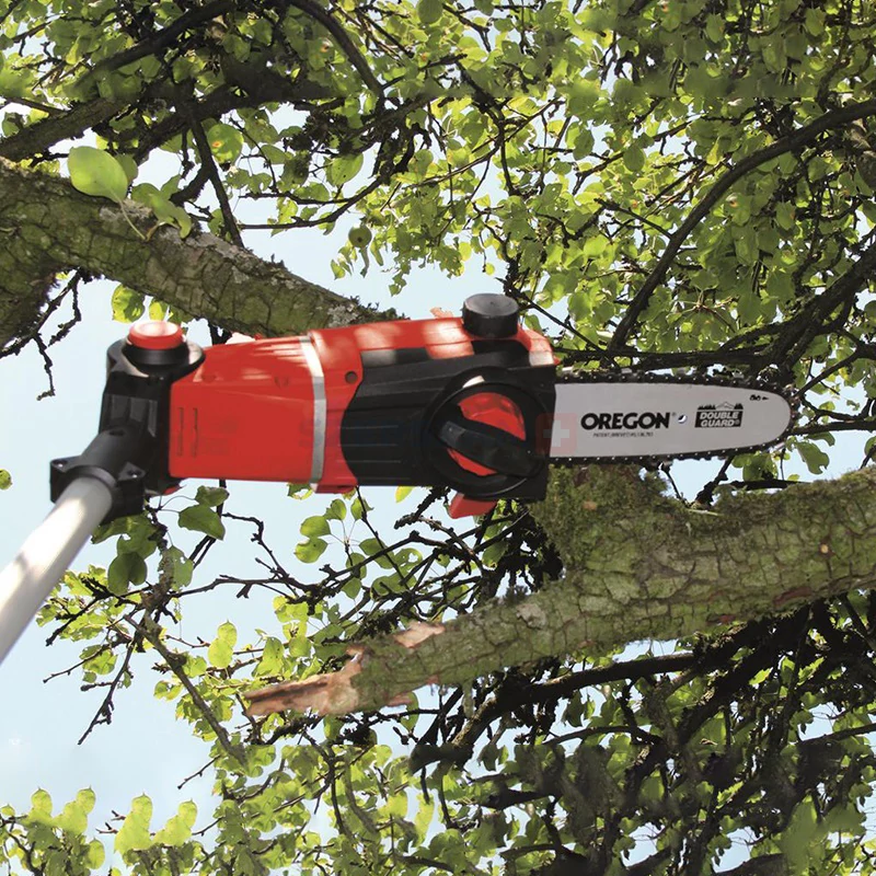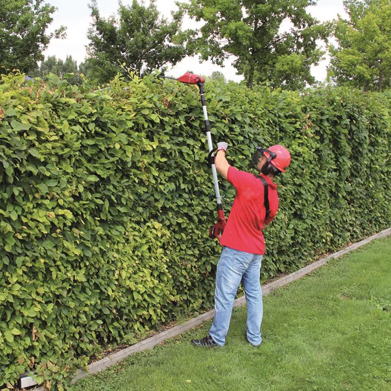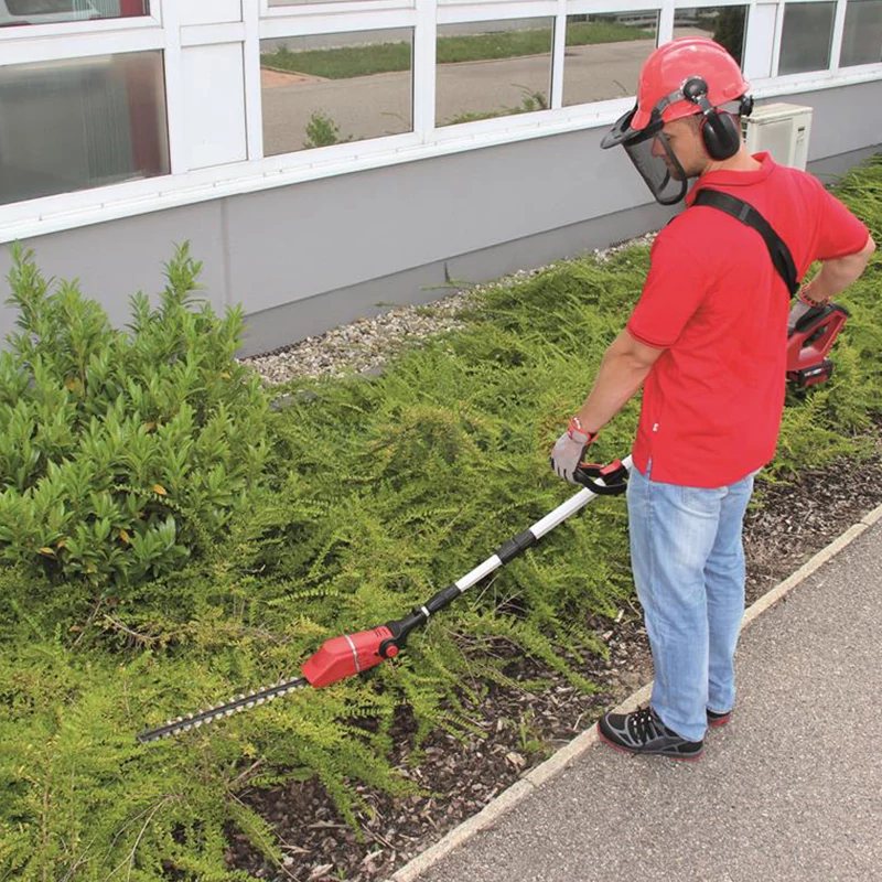 A GE-HC 18 Li T akkumulátoros többfunkciós szerszám nagy teljesítményű készülék, amellyel magasabb ágak és magas sövények is könnyen, villanyhálózattól függetlenül, a talajon állva vághatók. A fém anyagú hajtómű hosszú élettartamot biztosít, az OREGON minőségi vágó és az OREGON lánc tiszta vágási eredményt ad. A 90°-kal elforgatható rátét könnyű, vízszintes vágást biztosít. A karmos ütköző megakadályozza a fűrész kicsúszását. Az olajtartály segítségével működő automatikus lánckenő látja el az OREGON láncot a szükséges kenőanyaggal. Szükség esetén a praktikus láncfeszítővel szerszám nélkül állítható és cserélhető a lánc. A láncfogó csapszeg ilyenkor megbízhatóan megakadályozza, hogy lecsússzon a lánc a vágólapról. A lézerrel vágott, gyémántcsiszolt acélkések tiszta vágási eredményt biztosítanak. Stabil tartótokban biztonságosan és kényelmesen szállítható és tárolható a sövényvágó. A 880 mm és 1840 mm között fokozatmentesen rögzíthető teleszkópos nyél pontosan beállítható a kívánt munkamagassághoz. Az ugyancsak fokozatmentesen állítható kiegészítő fogó praktikus gyorszárral minden felhasználóhoz beigazítható. Magasban végzendő nehéz vágómunka tiszta és pontos végzésére a motorfej 7 fokozatban, a fogó 4 fokozatban dönthető, így bármilyen munkahelyzethez beigazítható. Akkumulátor és töltő nem tartozik a szállítmányhoz.