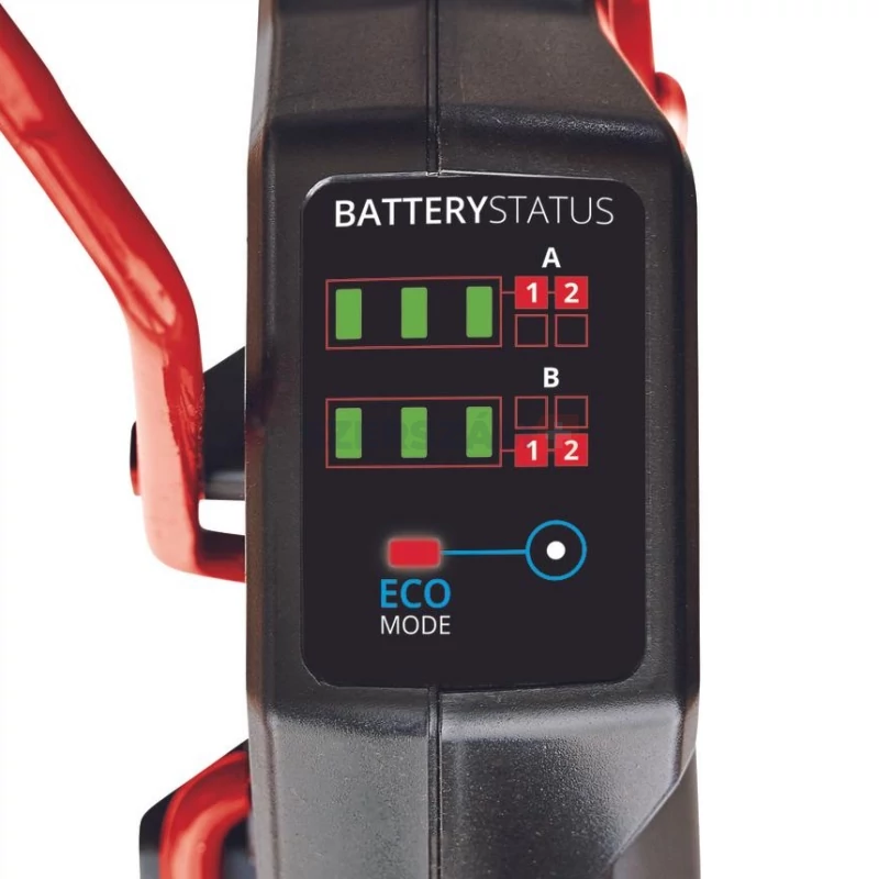 Ha az Einhell nagy teljesítményű GP-CM 36/47 S Li BL (4x 4,0Ah) akkumulátoros fűnyíróját választja, akkor biztos lehet abban, hogy a fűnyírás könnyű, a végeredmény pedig kifogástalan lesz. A fűnyírót Einhell PurePOWER szénkefe nélküli motorral szerelték fel. A szénkefe nélküli motorok nagyobb erőátvitelt és hosszabb üzemidőt garantálnak, mint a szénkefével gyártott társaik. Ezekre a motorokra – online regisztrációt követően – 10 év jótállást vállalunk. A nagy teljesítményű akkumulátoros fűnyíró a Power X-Change termékcsalád tagja, melynek valamennyi eleme – beleértve az összes akkut, készüléket és töltőt – kombinálható egymással. A kétfokozatú intelligens fordulatszám-szabályozó elektronika mindig az alkalmazás intenzitásának megfelelő fordulatszámot biztosít. A munka elvégzéséhez szükséges energiát a 36 V dupla Twin-Pack technológia adja, amely négy nagy teljesítményű 18 V akku erejét egyesíti a hosszabb használat érdekében. Az ECO-üzemmód még hosszabb üzemidőt biztosít. A nyélre szerelt töltöttségiszint-jelzőnek köszönhetően bármikor könnyedén ellenőrizheti az akku állapotát. 47 cm-es vágásszélességgel, legfeljebb 700 m² nagyságú gyepfelületekhez ajánlott. A vágási magasságot egyszerűen beállíthatja a kilencfokozatú magasságállítás segítségével (25 – 80 mm). A nagy méretű és praktikus telítettségjelzővel ellátott nejlonból készült kosár max. 65 liternyi levágott füvet képes összegyűjteni. Ha behelyezi a mulcsozóéket, akkor a fűnyíró felaprítja és egyenletesen szétszórja a levágott füvet a talajon, növelve így annak tápanyagtartalmát. Ha nagyon magas fűben dolgozik, akkor az oldalsó fűkivetés nélkülözhetetlen segítség, hiszen így nem kell folyamatosan kiürítenie a gyűjtőzsákot. Az akkumulátoros fűnyírót összecsukható, állítható magasságú nyéllel tervezték. A nyelet bármilyen testmagassághoz egyszerűen beállíthatja, illetve lehajtva helytakarékosan tárolhatja a készüléket. A nagy méretű hátsó kerekeknek és a munkaterület sajátosságaihoz automatikusan igazodó fordulatszámot biztosító önjáró kialakításnak köszönhetően még egyenetlen talajon is egyszerűen dolgozhat a fűnyíróval. A nagy futófelületű kerekek óvják a pázsitot. A motor tetején lévő LED segít a munkaterület megvilágításában. A GP-CM 36/47 S Li BL akkumulátoros fűnyíró gyári csomagolásában négy 4,0 Ah Power X-Change akku és két Twincharger töltő található. A töltővel egyszerre két akkut tölthet.