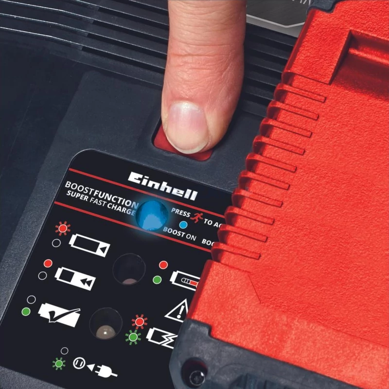 Most tervezi megvásárolni élete első Power X-Change készülékét? Esetleg bővíteni szeretné meglévő eszközparkját? Mindegy, melyik fázisban van éppen, az Einhell 18 V 4-6 Ah Power X-Change PLUS kezdőcsomag tökéletes választás mindkét esetre! A 18 V 4-6 Ah Power X-Change Plus akkuból és Power X-Boostcharger 6A töltőből álló kezdőcsomag a Power X-Change rendszercsalád multifunkcionális, egymással kombinálható, határtalan szabadságot biztosító tagja. Az univerzális Power X-Change akkukkal a termékcsalád valamennyi kerti- és szerszámgépét üzemeltetheti. A sorozat töltőkészülékeivel az összes PXC-akkut feltöltheti. Ha egyetlen akkumulátort és töltőt használ valamennyi készülékéhez, akkor nem csak a költségeit csökkentheti és a környezetet óvja jelentős mértékben, hanem a különböző típusú töltők és akkuk használatából és tárolásából adódó káoszt is örökre elfelejtheti! A MULTI-Ah technológia lehetővé teszi, hogy választhasson a maximális teljesítményt nyújtó 6 Ah, vagy a háromszor hosszabb élettartamot biztosító 4 Ah üzemmódok közül. A legújabb generációs lítium-ion cellák 100 %-kal nagyobb teljesítményt garantálnak, bármilyen munkához használja a készüléket. A teljesítményintenzív feladatok elvégzéséhez a PLUS-technológia nyújt extra támogatást. Mivel nincs memória-effektus és mélykisülés, ezért a csúcsminőségű akkuk nagy és egyenletes teljesítményt adnak le. A 18 V 4-6 Ah Multi-Ah Power X-Change PLUS a Power X-Change család csúcskategóriás akkumulátora, amelyet a TWIN-PACK technológia jóvoltából 36 V feszültséget igénylő munkákhoz is használhat. A beépített mikroprocesszornak köszönhetően az aktív akkumulátorfelügyeleti rendszer (ABS) folyamatosan felügyeli és vezérli az akkumulátor valamennyi paraméterét, optimális teljesítményt, maximális biztonságot, üzemidőt, valamint élettartamot biztosítva ezzel. A Power X-Change Boostcharger 6 A a Power X-Change termékcsalád leggyorsabb töltője. A külön bekapcsolható gyorstöltő üzemmód jelentősen lerövidíti a Power X-Change akkumulátorok töltési idejét: boost-üzemmódban 50%-kal rövidebb idő alatt feltöltheti a PXC-akkukat. A Power X-Change készülékeket és szerszámgépeket kevesebb mint 60 percen belül újra hadrendbe tudja állítani, és így még hamarabb rendelkezésre áll majd az üzemeltetéshez szükséges erő és teljesítmény. Az intelligens akkumulátorfelügyeleti rendszer tartósan optimalizált töltési folyamatot és maximális biztonságot garantál. Az akku töltöttségi szintjét a 6 fokozatú LED-kijelzőről olvashatja le. A helytakarékos tárolás érdekében a kompakt töltőt fali akasztókkal szerelték fel.