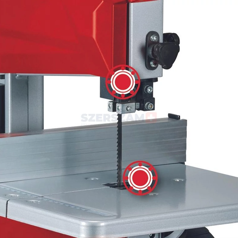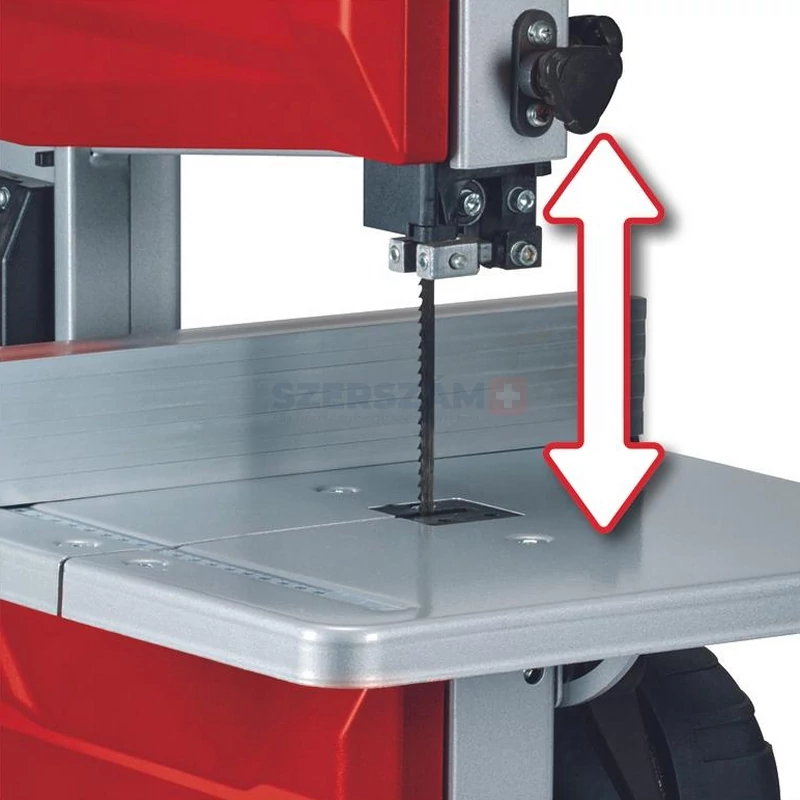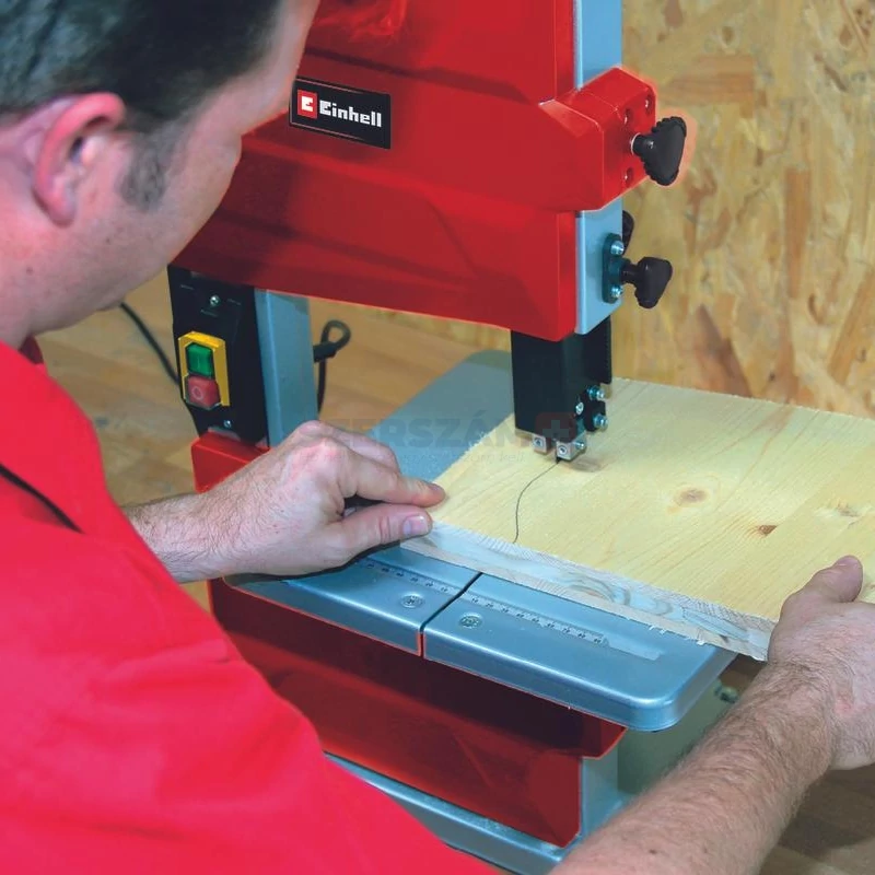 Az Einhell TC-SB 200/1 szalagfűrész egy nagyméretű alapgép lelkes otthoni felhasználóknak és ezermestereknek. A szalagfűrész egy nehéz, ugyanakkor mégis rugalmasan kezelhető készülék, amellyel még a legkülönbözőbb munkakörülmények között is elvégezheti a feladatát. Egyenes vagy ferde vonalú vágások, ferdén vagy szálirányban: a szalagfűrésszel egyik sem lehet akadály. Attól függően, hogy milyen fűrészlapot helyez fel, fát, fémet és műanyagot vághat a 250 W teljesítményű motorral felszerelt fűrész segítéségével. A szalagfűrész másik nagy előnye, hogy a vágás vonala keskeny; így óvja az anyagot, és energiát is spórol. Ha rendeltetésszerűen használja a TC-SB 200/1 készüléket, akkor nem kell aggódnia a biztonság miatt. A magasságállítás nem csak akkor nagy segítség, ha precíziós vágást végez a készülékkel; segítségével mindig a felhasználó magasságához állíthatja a készüléket, ami nagyobb biztonságot és kényelmesebb munkát szavatol. A fűrészlap rögzítőt többféle pozícióba állítva csökkentheti a fűrészlap rezgését, amelynek köszönhetően jóval biztonságosabban használhatja a készüléket, és a vágáskép is sokkal szebb lesz. A fűrészlap-védelem magasságát is tetszőlegesen beállíthatja, illetve, a vágandó anyag vastagságához is igazíthatja. A gyári csomagolásban található tolófa elengedhetetlen kellék a biztonságos munkavégzéshez. Mivel a fűrészasztal fokozatmentesen dönthető, ezért még bonyolultabb ferde vágásokat is elvégezhet a készülékkel. A párhuzamos ütköző és a golyóscsapágyas vezetés segítik az otthoni barkácsolókat, hogy egyenesen és pontosan vágjanak a készülékkel.