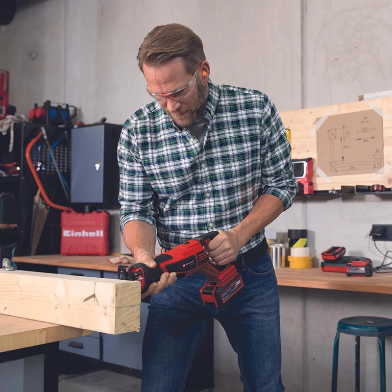 Az Einhell TE-AP 18/28 Li BL - Solo akkumulátoros orrfűrész az Einhell Power X-Change termékcsalád nagy teljesítményű tagja, amelyhez a sorozat valamennyi akkumulátorát használhatja. A szénkefe nélküli motorok nagyobb erőátvitelt és hosszabb üzemidőt garantálnak, mint a hagyományos, szénkefével gyártott motorok. A rezgéselnyelő funkció csökkentett rezgésszintet biztosít. Az ergonomikus kialakítás és a Softgrip borítású markolat kényelmes munkavégzést tesznek lehetővé. A határtalan rugalmasságról a forgatható főfogantyú gondoskodik. Az állítható talplemez optimális fűrészlapvezetést, a szerszám nélküli tartozékcsere pedig egyszerű, kényelmes használatot garantálnak. A gyári csomagolás kiváló minőségű KWB fafűrészlapot tartalmaz. A készülék akkumulátor és töltőkészülék nélküli kivitelben érhető el. Az optimális végeredmény elérése érdekében a fűrészhez 2,5 Ah vagy nagyobb kapacitású akkumulátort ajánlunk.