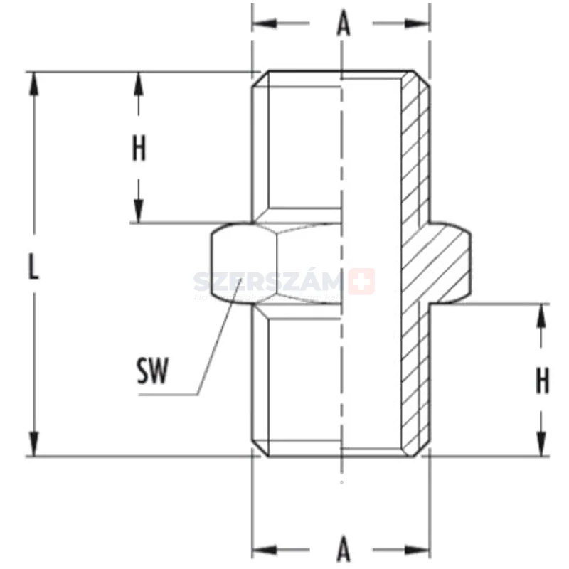 | cikkszám | csatlakozó méret (A) (inch) | teljes hossz (L) (mm) | menethossz (H) (mm) | laptávolság (SW) (mm) | típus azonosító |