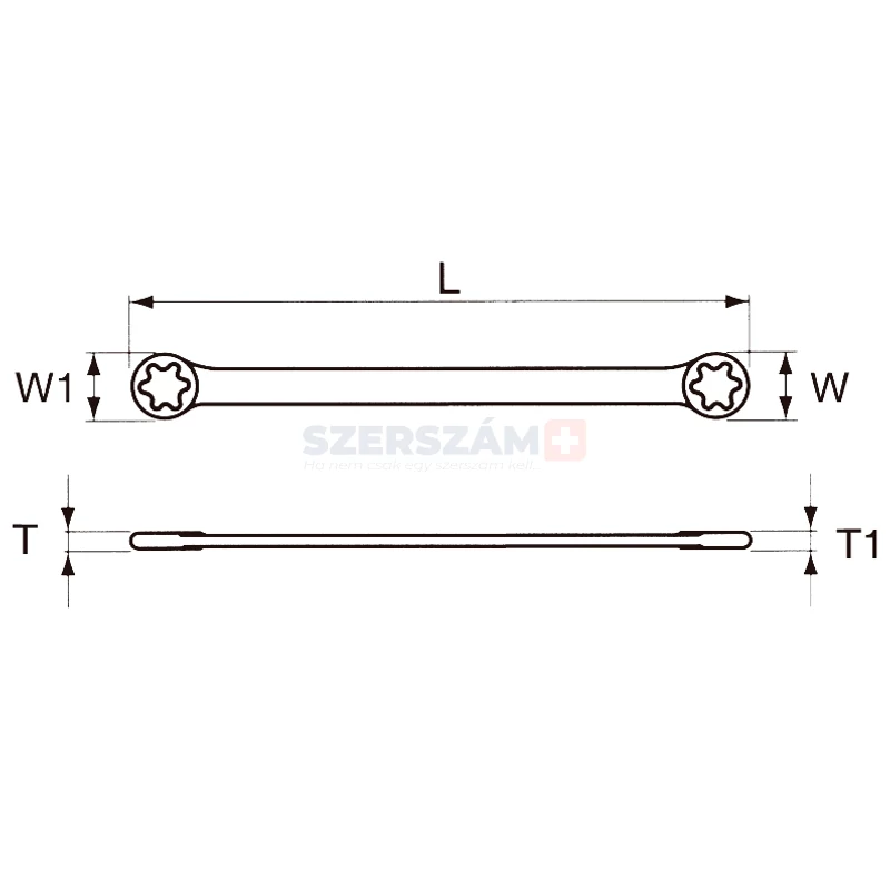 | cikkszám | méret (mm) | L (mm) | W (mm) | W1 (mm) | T (mm) | T1 (mm) | típus azonosító |