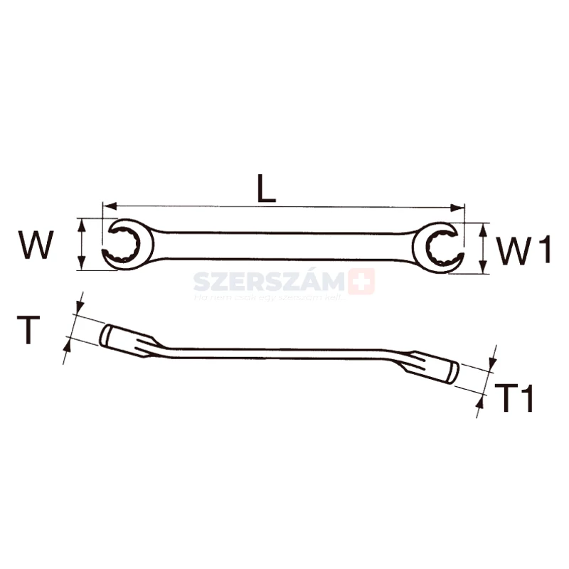 | cikkszám | típus azonosító | L (mm) | méret (mm) | T | T1 | W | W1 |