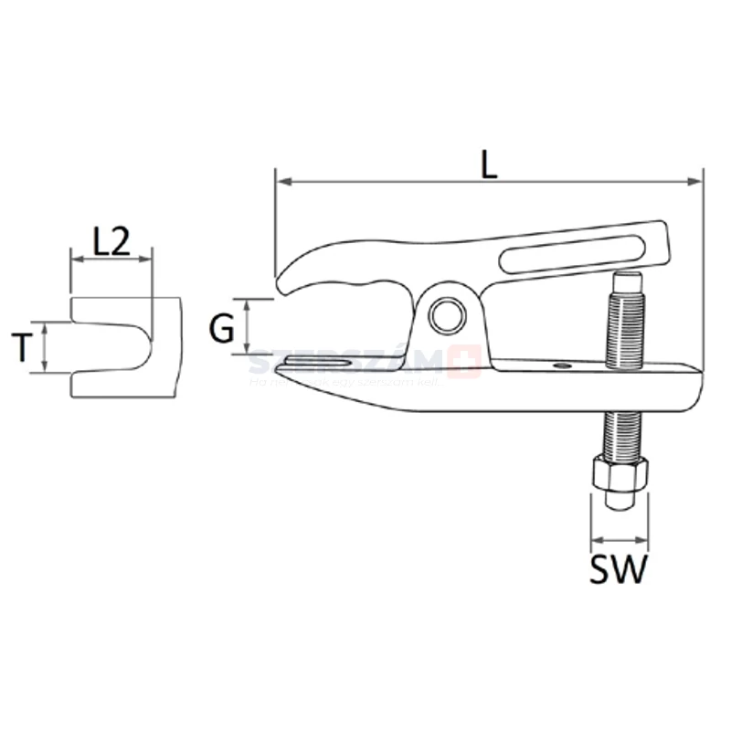 | Cikkszám | L (mm) | G (mm) | L2 (mm) | T (mm) | SW (mm) | típus azonosító |