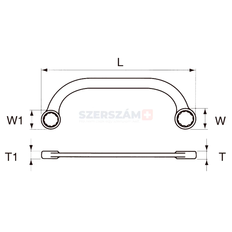 | cikkszám | típus azonosító | L (mm) | méret (mm) | T | T1 | W | W1 |