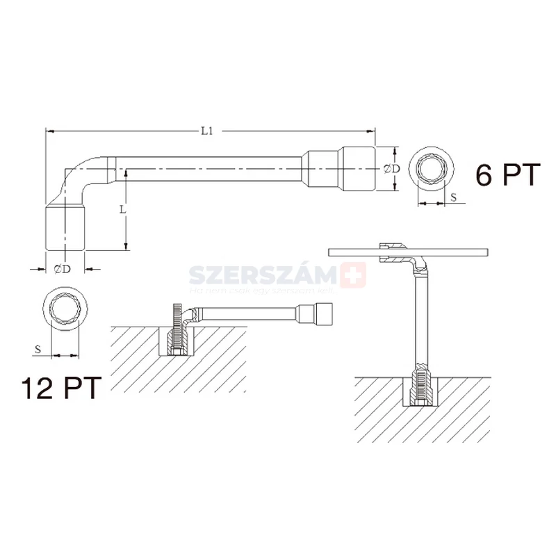 • A hosszab szár végén 6 szögű, a rövidebb szár végén 12 szögű