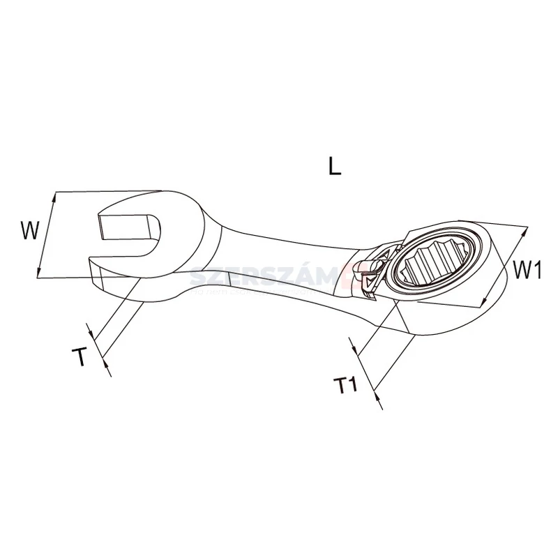 HANS racsnis csillag-villás kulcs, irányváltós, rövid 12mm CrV 1166S12