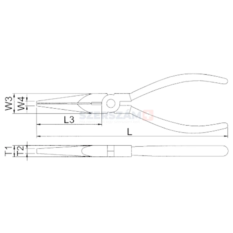 | cikkszám | méret (L) (mm) | sodrott huzal/acélszeg 1600-1800 N/mm2 | edzett acélhuzal 2200-2300 N/mm2 | L3 (mm) | W3 (mm) | W4 (mm) | T1 (mm) | T2 (mm) | típus azonosító | réz/alu 220-250 N/mm2 | vasszeg 750-800 N/mm2 |