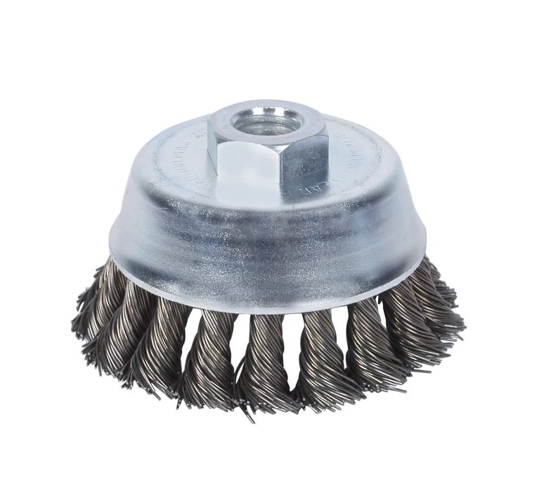 • Erős, sodrott, nemesacél szálú, menetes ultra fazékkefe sarokcsiszoló gépekhez