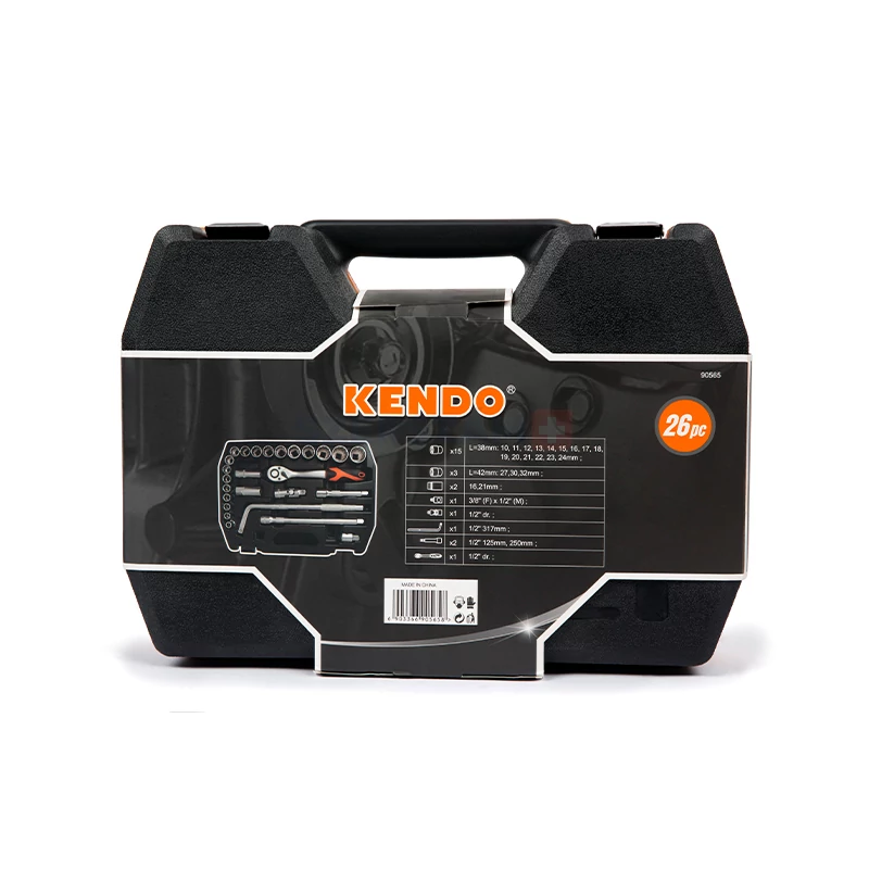 • A 26 részes, KENDO 1/2" dugókulcs készlet minden alapvető szerszámot tartalmaz, ami a ház körüli munkákhoz szükséges