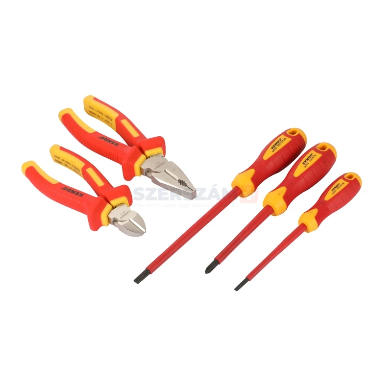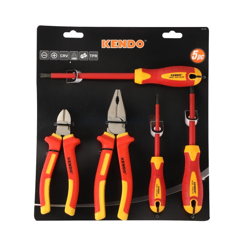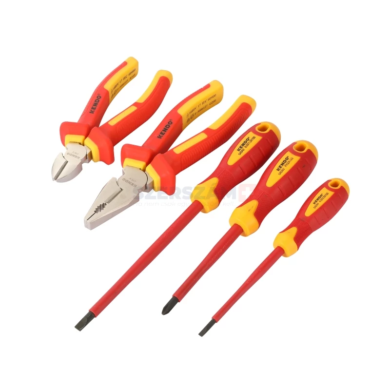 • Az 5 részes KENDO vegyes fogó és csavarhúzó készlet szigetelt 1.000 V AC-ig