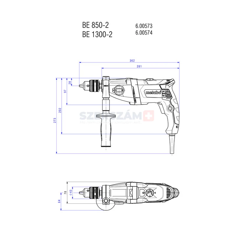- Metabo S-automatic biztonsági kuplung: a hajtómű mechanikus szétkapcsolásához a fúró blokkolása esetén a biztonságos munkavégzés érdekében