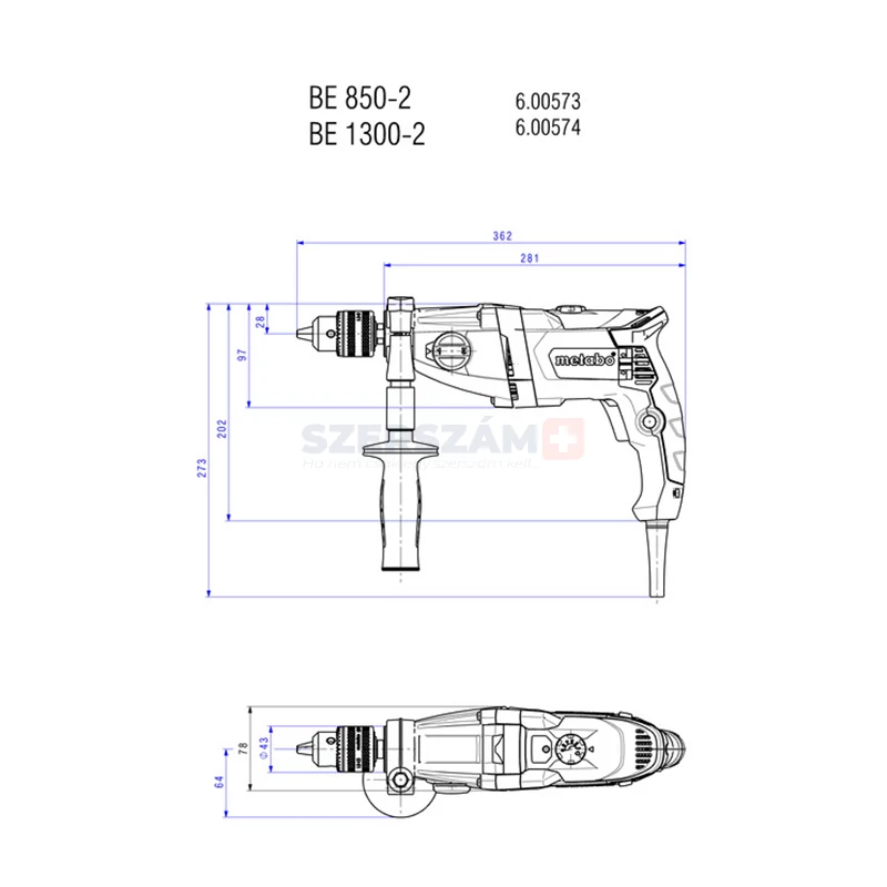 - Metabo S-automatic biztonsági kuplung: a hajtómű mechanikus szétkapcsolásához a fúró blokkolása esetén a biztonságos munkavégzés érdekében