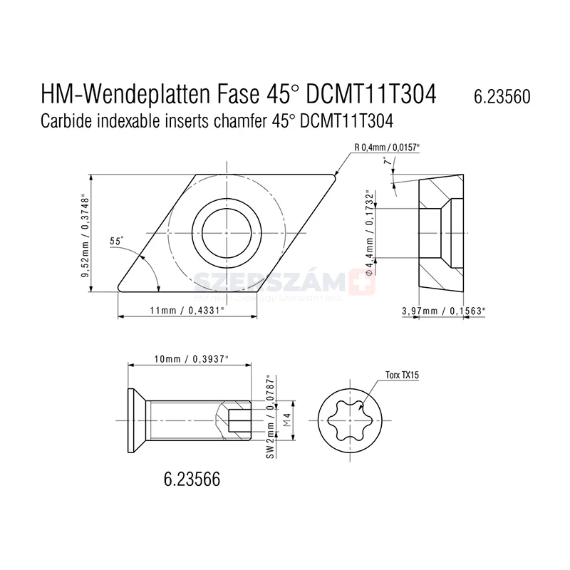 - 2 db keményfém váltólap 45°-os letörés (ISO: DCMT 11 T 304)