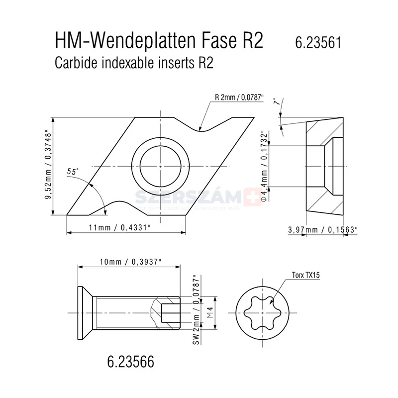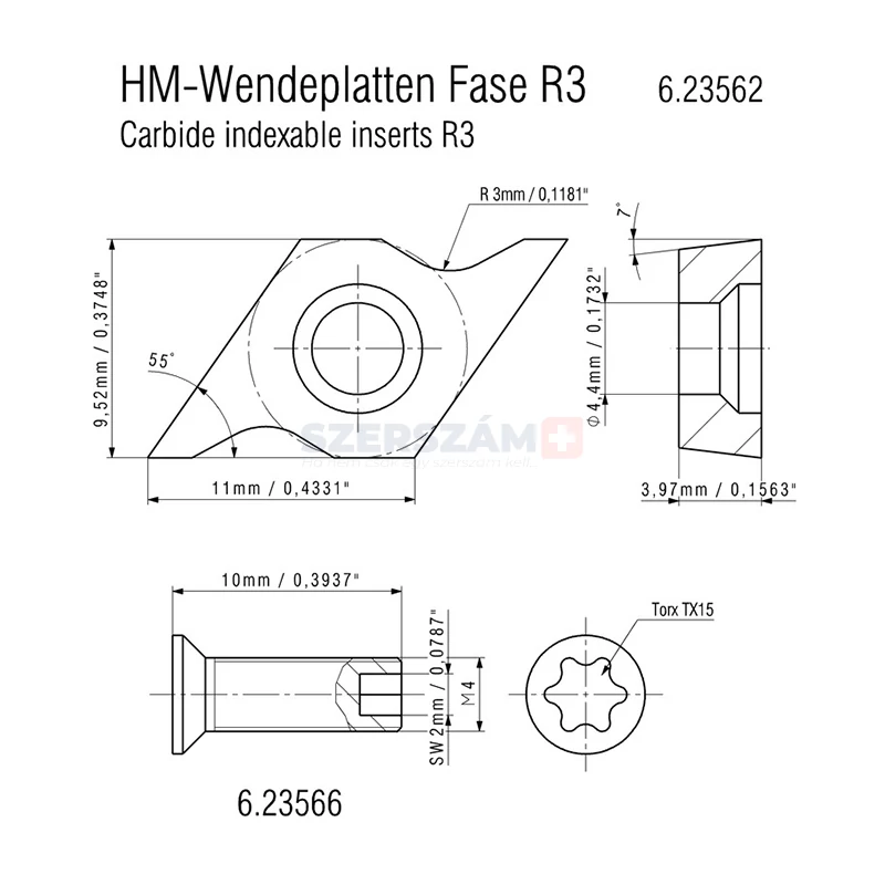 - 2 db keményfém váltólap, rádiusz: R3