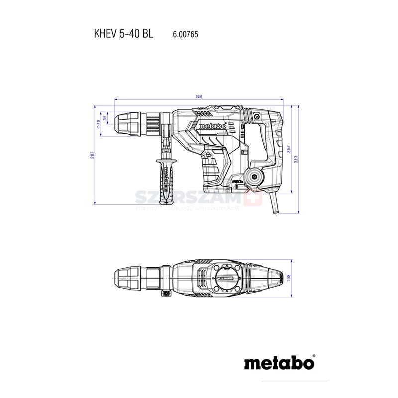- Metabo VibraTech (MVT) kétszeres csillapítással: lekapcsolt kézi markolat és ütést elnyelő ellenrezgő tömeg csökkentik az aktív vibrációt az egészséget kímélő munkavégzés érdekében tartós üzemeltetés során.