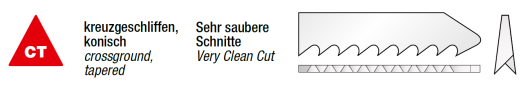 • Kivitel: Köszörült fogazás, hátszög-köszörült vágóél