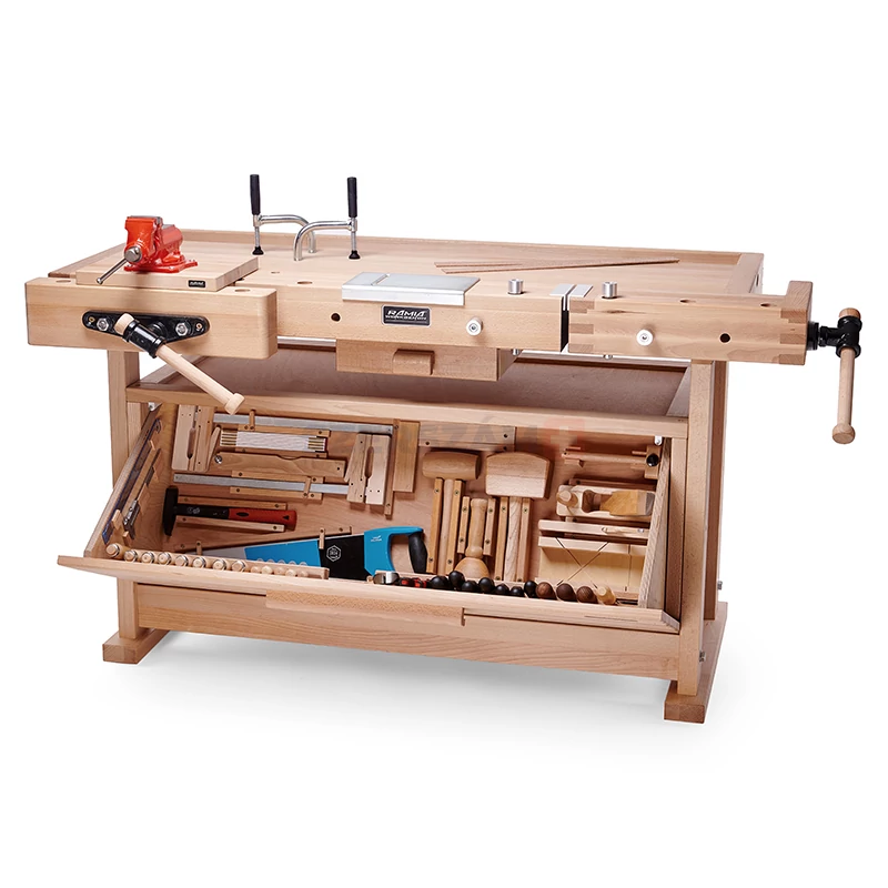 A széleskörűen használt, merev, egyenes csapolással készült illesztések garantálják a nagy szilárdságot és hosszú élettartamot. A gyalupad szerszámtároló fiókkal rendelkezik, melyben könnyedén tárolhatja a szerszámokat, melyeket mindig kéznél akar tartani. A munkalap hátsó oldalának teljes hosszában kialakított vályú különösen hasznos a munkalap gyors tisztítására, maradék anyagok és szerszámok tárolására.