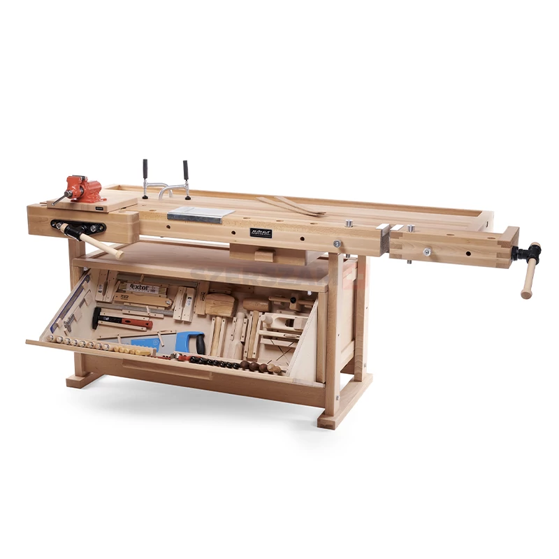 A széleskörűen használt, merev, egyenes csapolással készült illesztések garantálják a nagy szilárdságot és hosszú élettartamot. A gyalupad szerszámtároló fiókkal rendelkezik, melyben könnyedén tárolhatja a szerszámokat, melyeket mindig kéznél akar tartani. A munkalap hátsó oldalának teljes hosszában kialakított vályú különösen hasznos a munkalap gyors tisztítására, maradék anyagok és szerszámok tárolására.