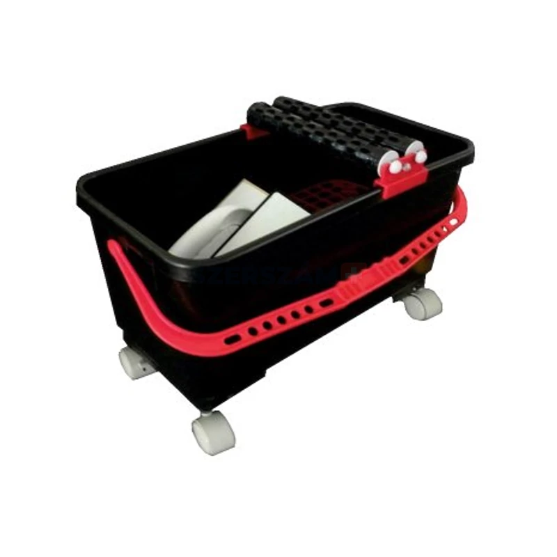 • 24 literes, ütésálló műanyag vödör kerekekkel, erősített hosszanti hordozófüllel