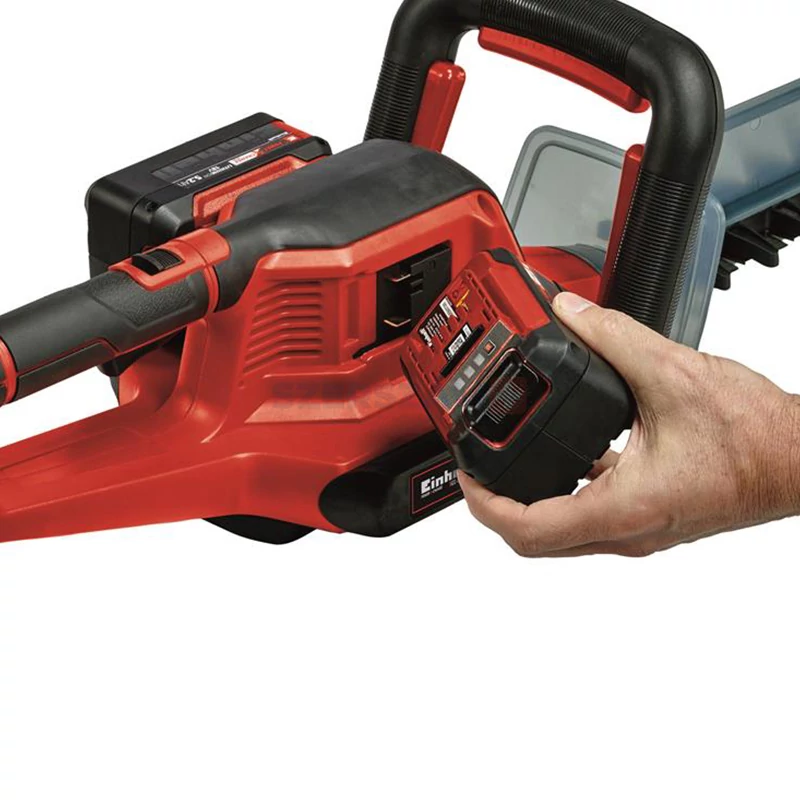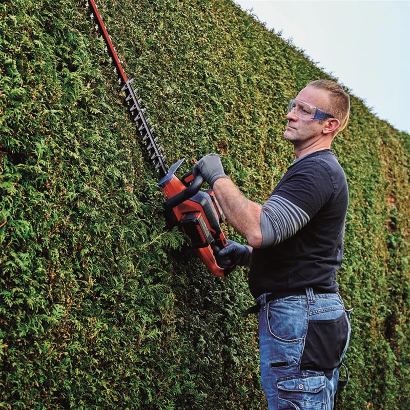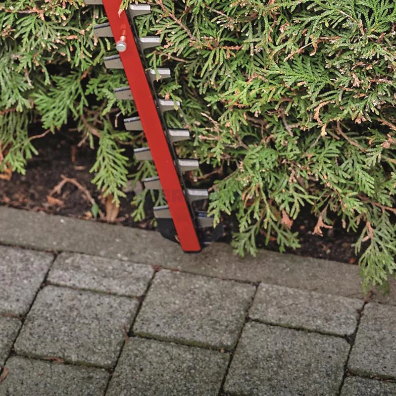 Ha az Einhell GE-CH 36/65 Li-Solo nagy teljesítményű akkumulátoros sövényvágójával dolgozik, akkor nem kell többé kábelekkel bajlódnia, ha szebbé szeretné varázsolni a sövényeket, a bokrokat és a cserjéket. A nagy teljesítményű Power X-Change akkumulátorokat a termékcsalád valamennyi tagjához használhatja, függetlenül attól, hogy kerti- vagy szerszámgépekkel dolgozik. Az akkumulátoros sövényvágót 2 db 18 V akkumulátorral üzemeltetheti. A percenkénti akár 2700 vágással és a 720 milliméteres kardhosszúsággal a sövényvágó könnyedén átvágja magát a sövényen, bokrokon és a bozóton. A kések lézerrel vágott, gyémántcsiszolású acélból készültek. A fém hajtómű szintén hosszú élettartamot szavatol. A forgatható fogantyú és az ergonomikus, keskeny, mikrokapcsolóval ellátott elülső markolat kényelmes munkavégzést biztosít. A praktikus nyesedékgyűjtőnek köszönhetően a vágáskép mindig tiszta és szép lesz. Az akkumulátoros sövényvágó késeit alumínium borítás védi. A készülékhez mellékelünk ütközésvédőt, melynek furatánál fogva a falra akaszthatja a készüléket, valamint egy erős, masszív tokot, amelyben tárolhatja és szállíthatja a készüléket. A készülékhez nem mellékelünk akkumulátort és töltőkészüléket; ezeket külön - például egy praktikus kezdőcsomag formájában - vásárolhatja meg.